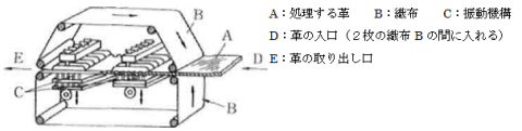 乾燥革をもみほぐし(ステーキング)て柔軟にする機械の一つ。連続作業ができる特色がある。上下からくい違った位置で高速で往復しながら突き出す突起があり、その間を革が通過する。革は突起により突きもみほぐされる。