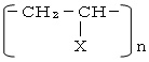 下記の構造をもつビニル系重合体のなかで接着剤に用いられるもの。ポリ塩化ビニル(X=Cl)、ポリメチルメタアクリレート(X=COOCH